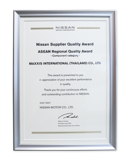 ▲上圖: Nissan ASEAN Regional Supplier Quality Award
