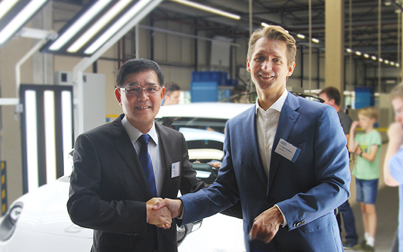 左:瑪吉斯輪胎總經(jīng)理李進(jìn)昌 右:e.Go高級(jí)經(jīng)理Dr.Carlo Hausberg
