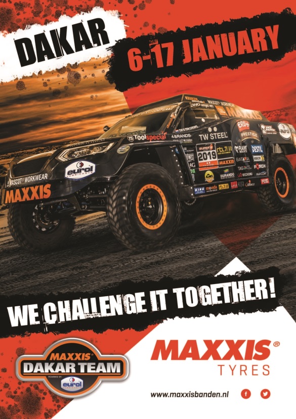 2019年1月6日,知名荷蘭車手Tim Coronel將在瑪吉斯輪胎的助力下,繼續(xù)帶領(lǐng)Maxxis Dakar Team瑪吉斯達(dá)喀爾車隊(duì)去挑戰(zhàn)世界上最危險(xiǎn)且致命的國際拉力賽?,敿惯_(dá)喀爾車隊(duì)的越野車‘野獸’,裝配了瑪吉斯4X4M8060,這款輪胎的結(jié)構(gòu)特別依照比賽需求所設(shè)計(jì),符合"Dakar"達(dá)喀爾使用標(biāo)準(zhǔn)并獲得100%Dakar認(rèn)證。